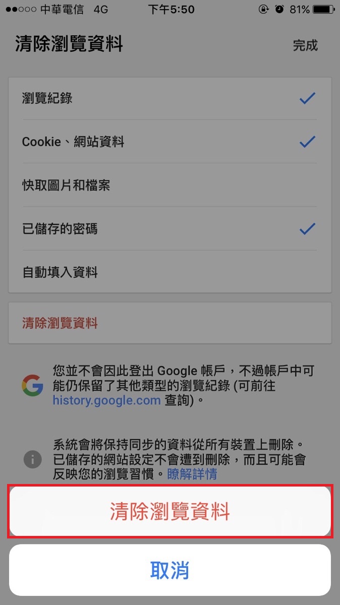IOS装置Chrome的Cache清除方式