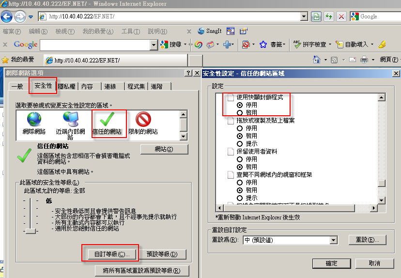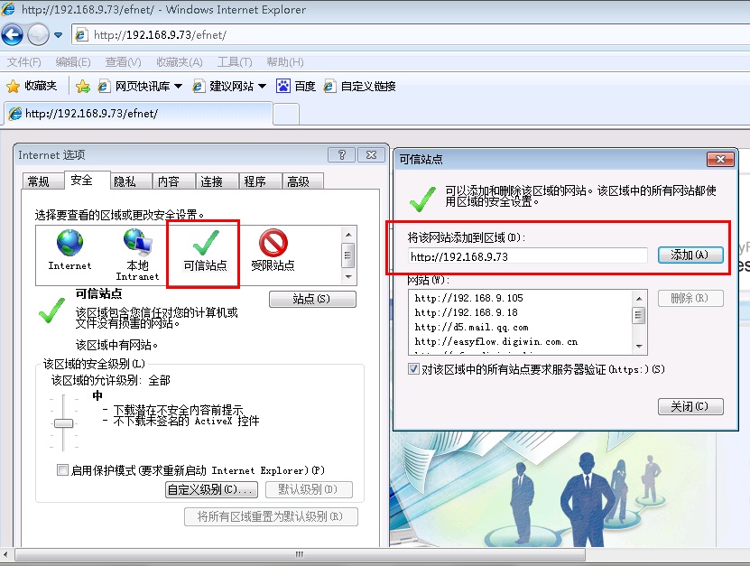 1.请将EF.NET 主机网址的位址 加入信任网站