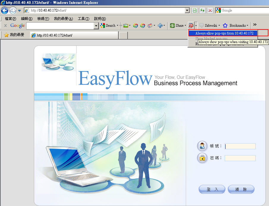 4.若有安装其他工具类Toolbar,请设定允许弹出视窗: