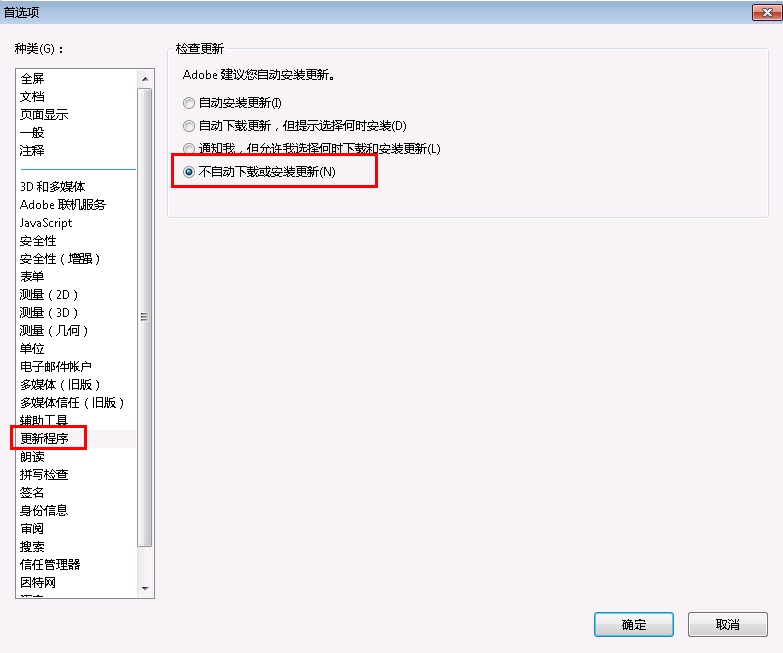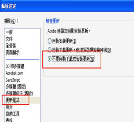 6.若有使用ISO模组,请关闭Acorbat Reader 自动更新:
