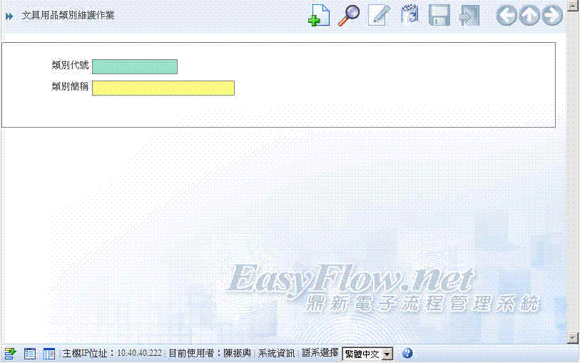 1. 对於办公用品类别,您可以利用此维护程式,建立这些办公用品类别代号。