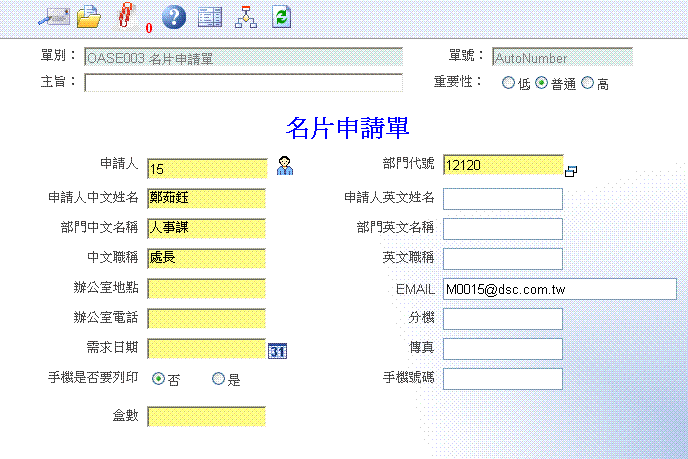 名片申请单