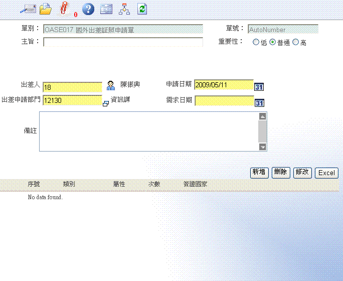 首 页 --> OAS 电子表单清单 --> 国外出差证照申请