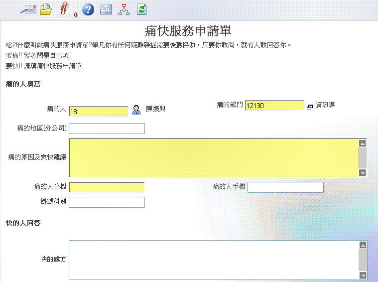 首 页 --> OAS 电子表单清单 --> 痛快服务申请单