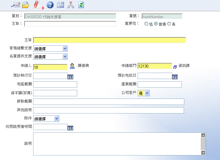 提供所有人员提出行销支援的需求。