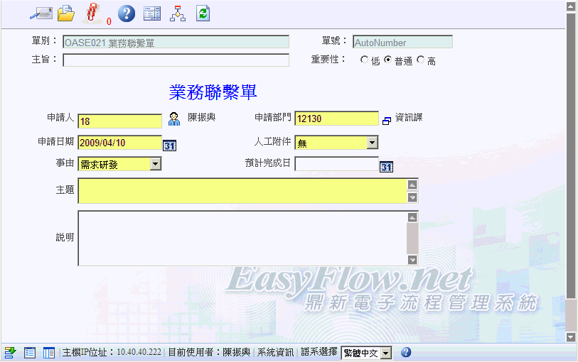 首 页 --> OAS 电子表单清单 --> 业务联系单