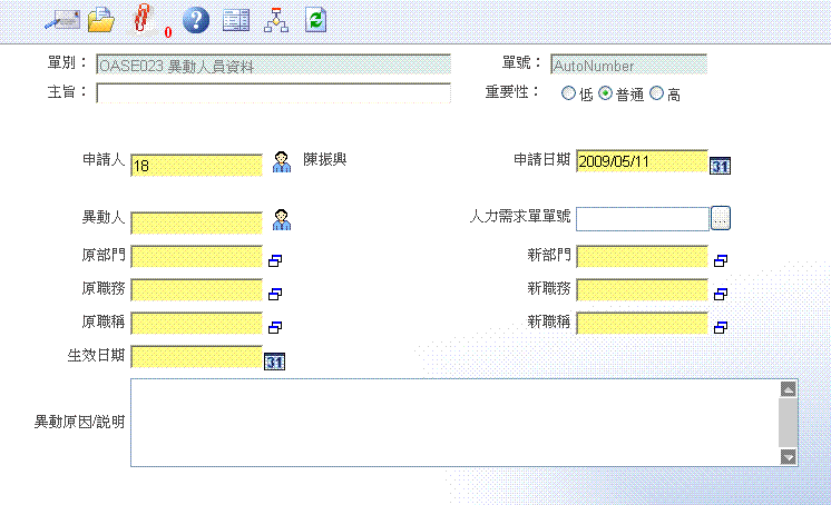 首 页 --> OAS 电子表单清单 --> 人事异动申请单