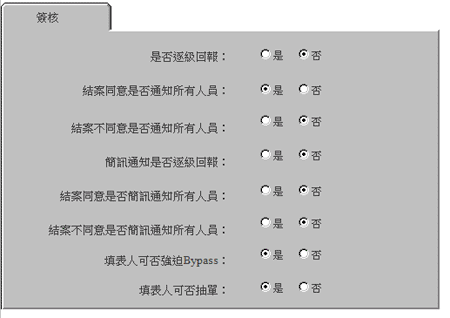 这个设定页主要是用来设定有关签核的各种相关性质以决定签核的方式。