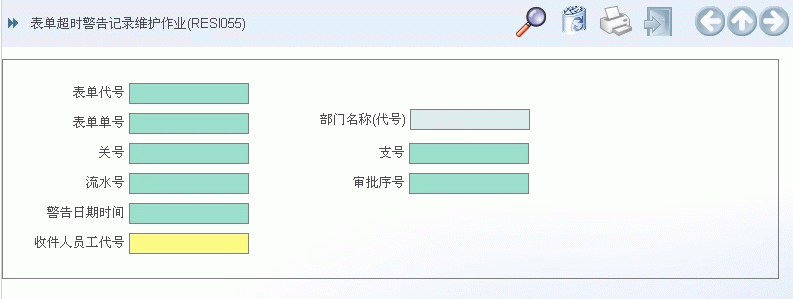 1. 在「表单性质维护作业(RESI050)」中,若将逾时警示开关打开(resca006="Y"),则当表单签核过程中任一关卡之签核人员逾时仍未签核,就会产生一笔警示资料,而本作业即可用来查询表单签核过程中,延迟於哪些签核关卡。