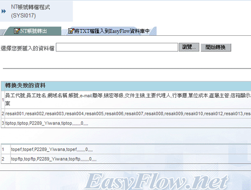 将 TXT 档汇入到 EasyFlow 资料库中